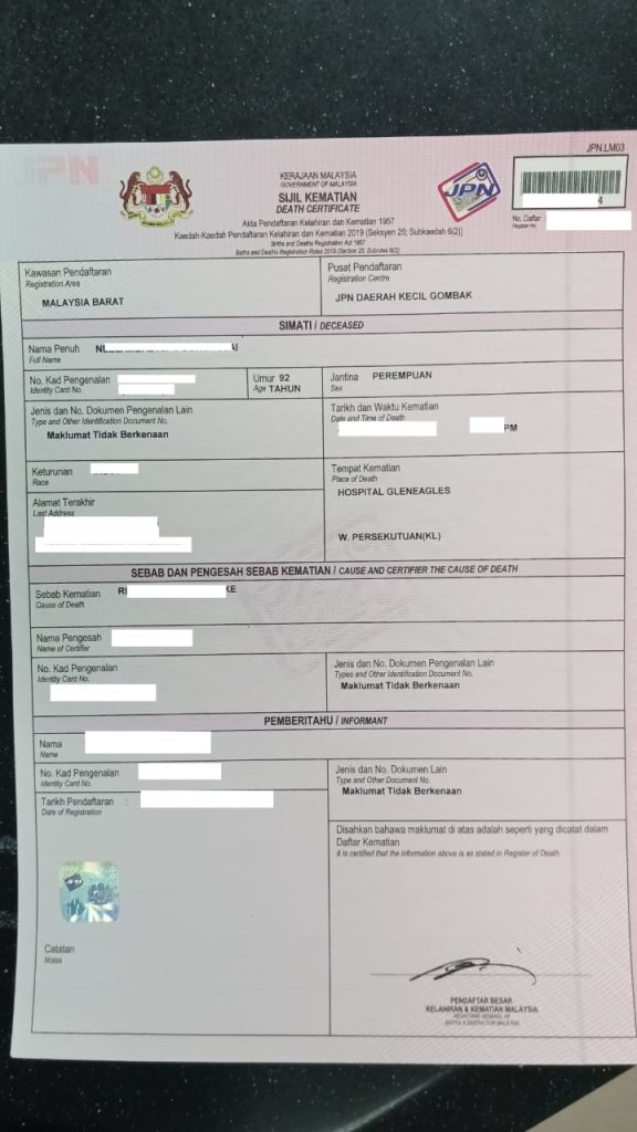 If the passing occurs in a hospital, the hospital will assist with the process.If it occurs at home, the case needs to be reported, and the body will be sent to a government hospital for official confirmation by a doctor.